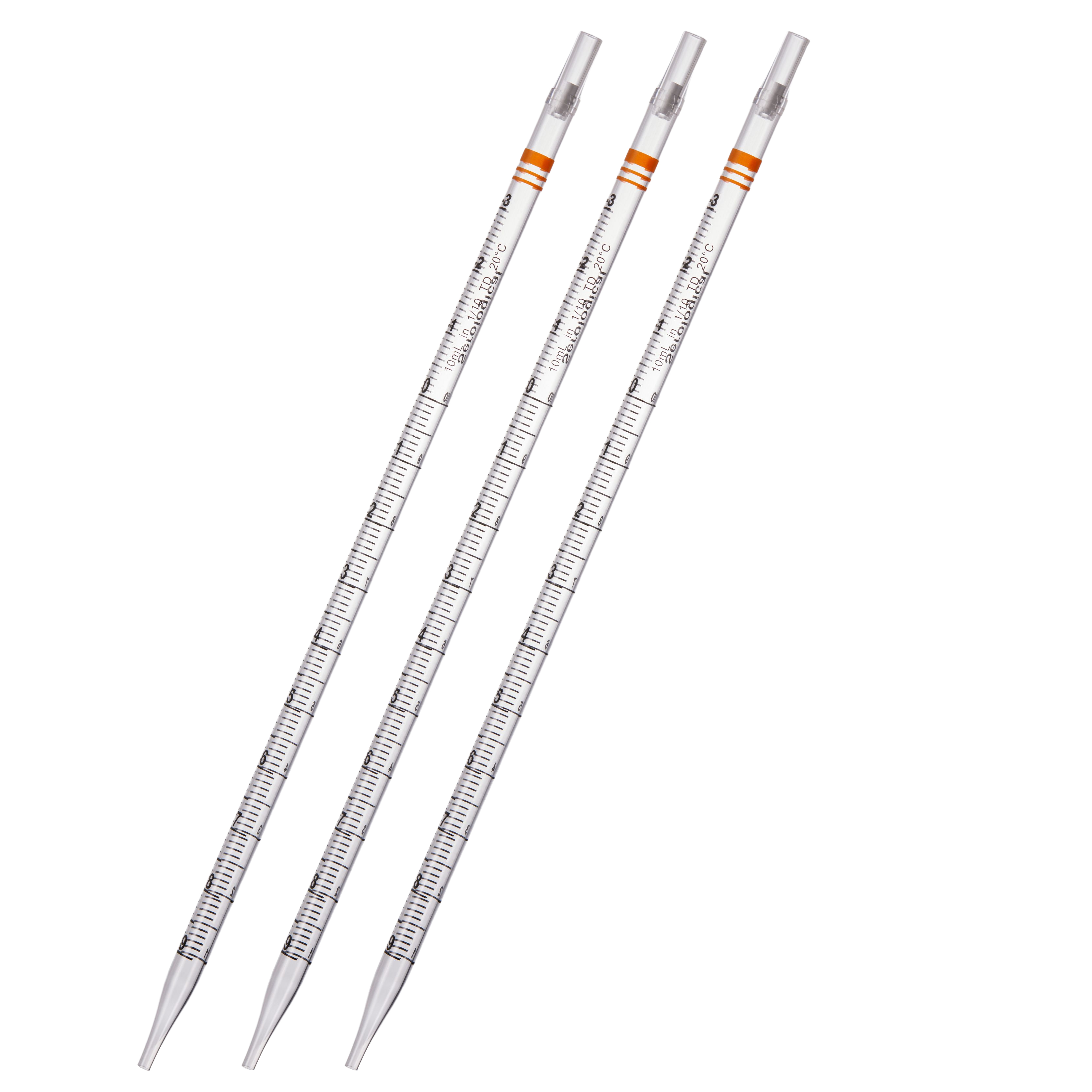 10 mL血清移液管,刻度1/10,焊接型,橙色色環(huán),獨(dú)立紙塑,内盒裝 ,滅菌,100支/盒,4盒/箱